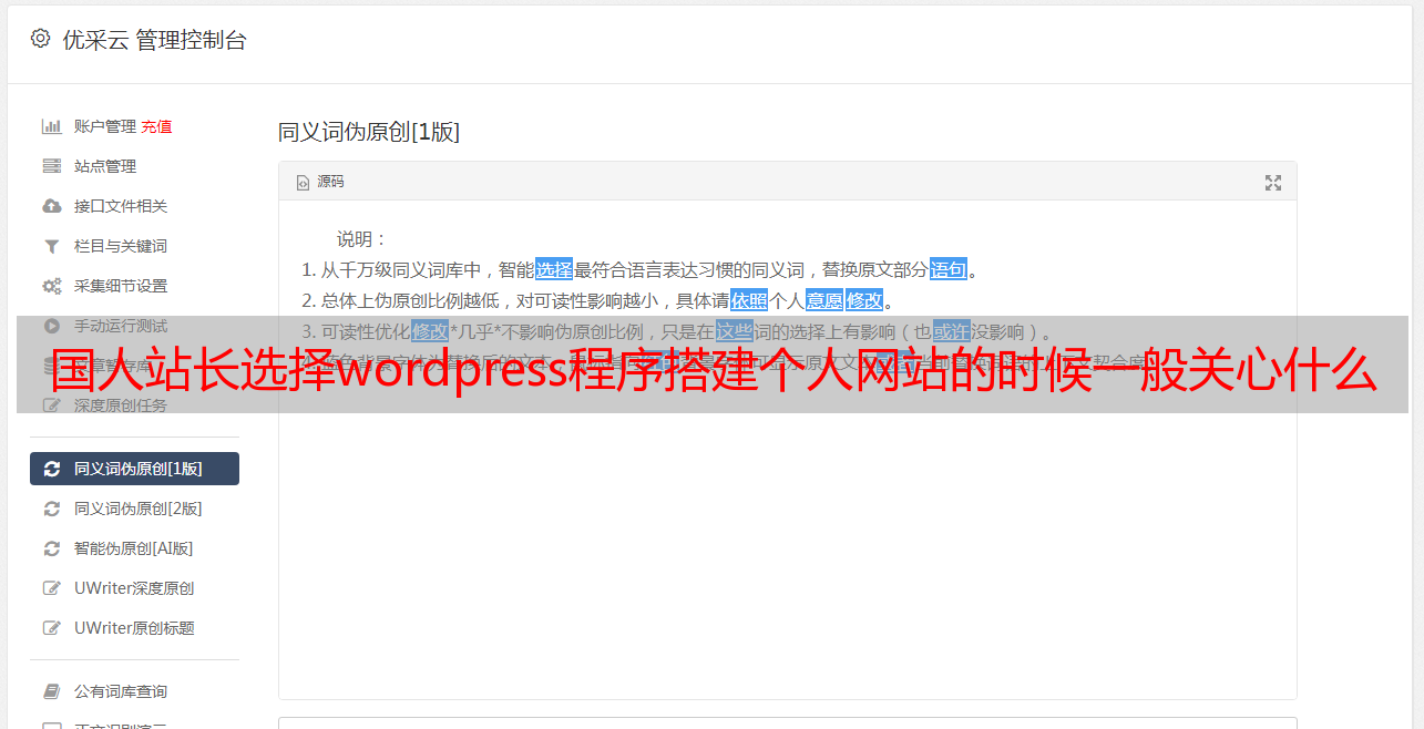 优采云 发布时间: 2021-08-08 05:07国人站长选择wordpress程序搭建个人网站的时候一般关心什么