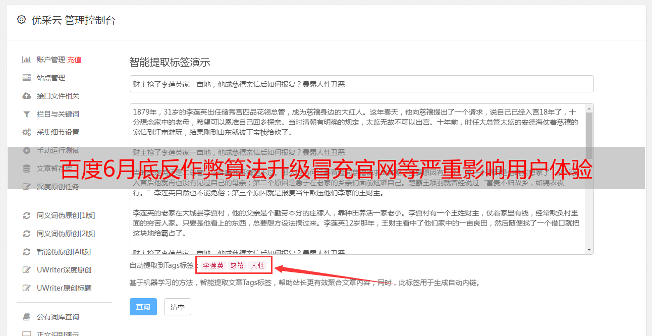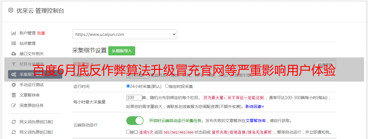 优采云 发布时间: 2021-08-08 11:35百度6月底反作弊算法升级冒充官网等严重影响用户体验