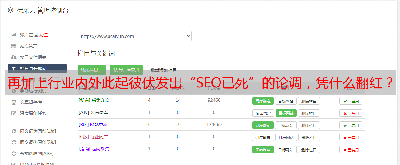 优采云 发布时间: 2021-08-08 19:39再加上行业内外此起彼伏发出“SEO已死”的论调,凭什么翻红?