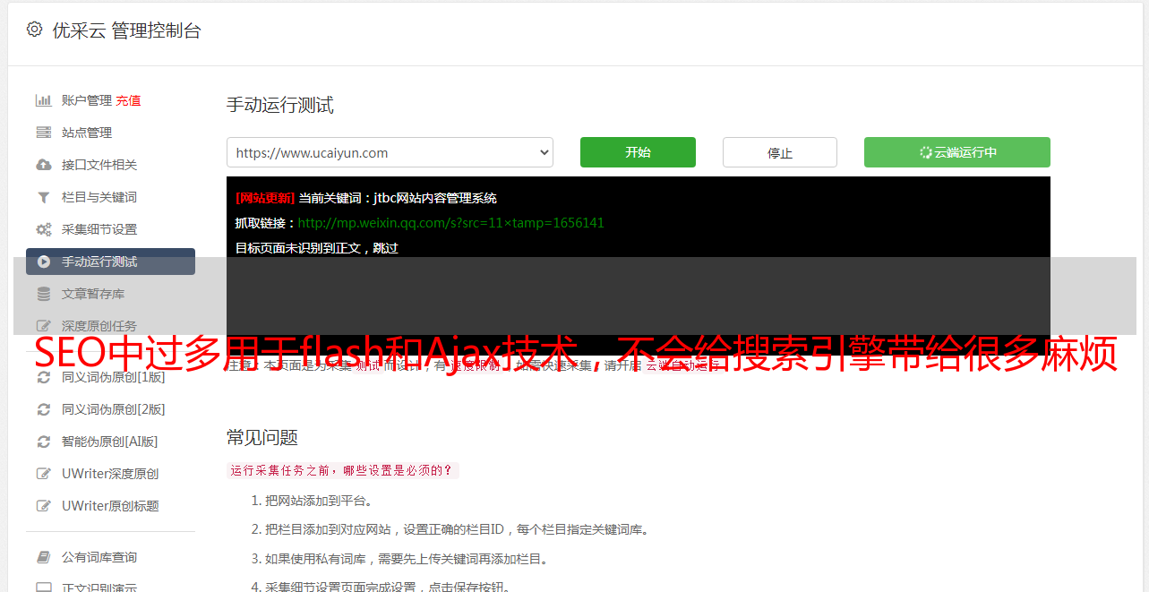 在SEO中过多使用flash和Ajax技术不会给搜索引擎带来很多麻烦。搜索引擎无法很好地索引 flash 和 ajax 显示的网页。原因是搜索引擎只索引页面,而做索引应用。