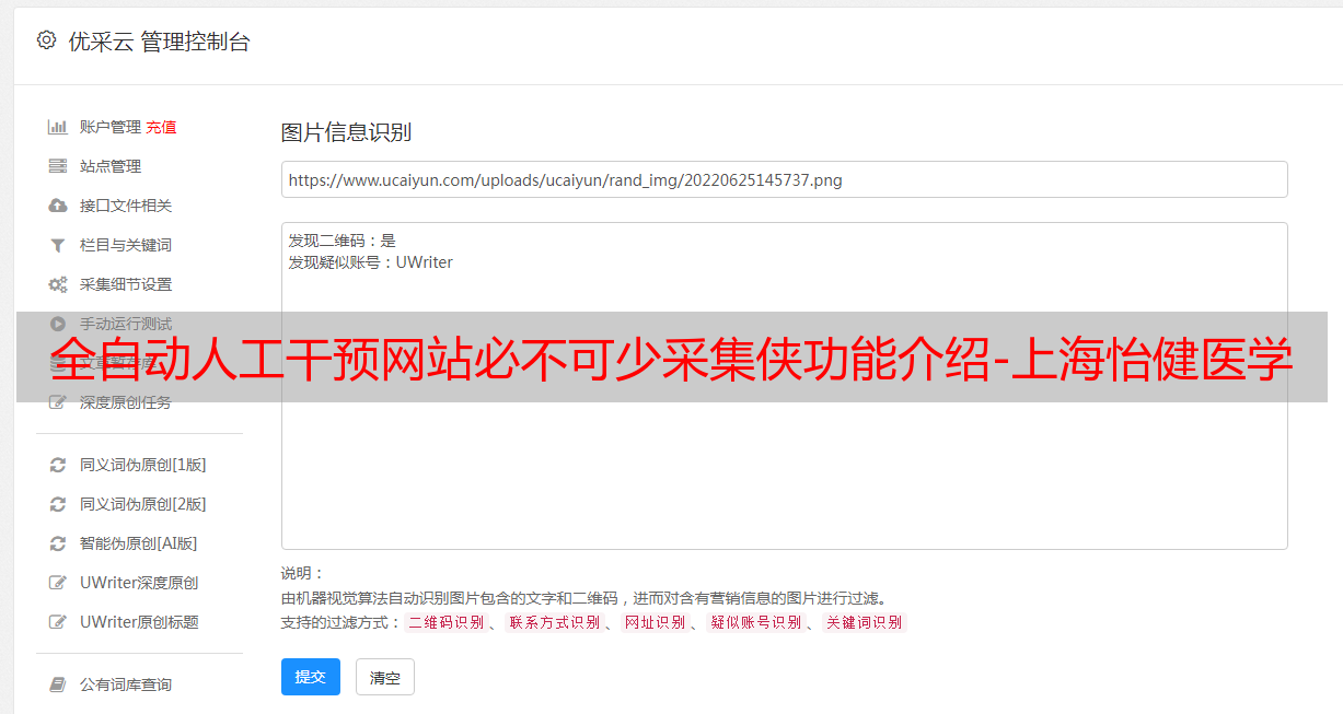 全自动人工干预网站必不可少采集侠功能介绍-上海怡健医学