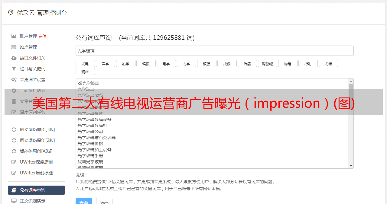 优采云 发布时间: 2021-08-12 01:10美国第二大有线电视运营商广告曝光(impression)(图)