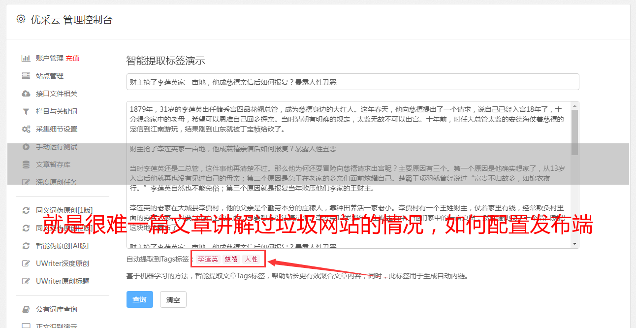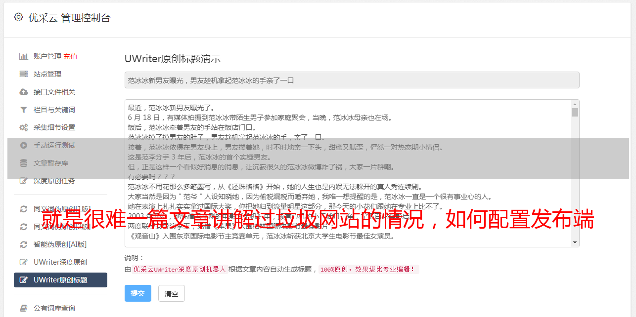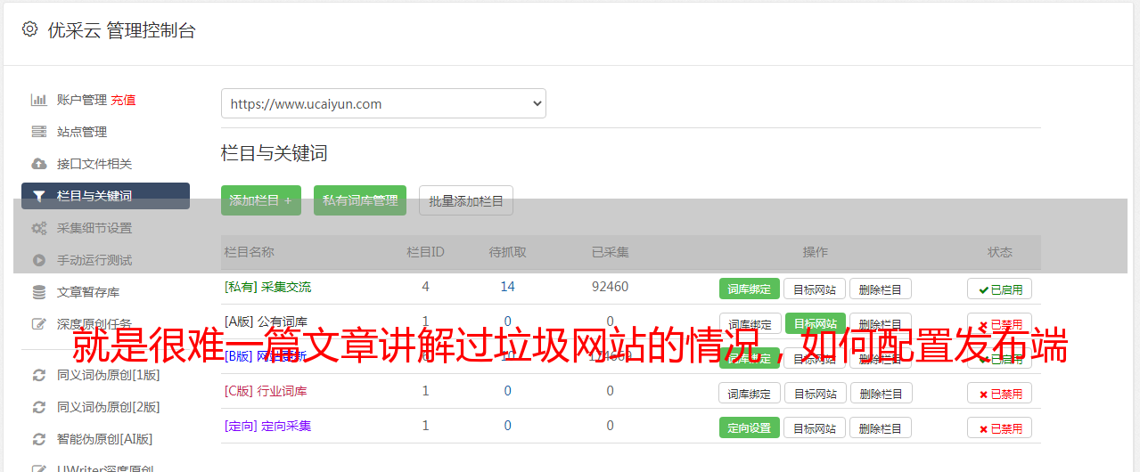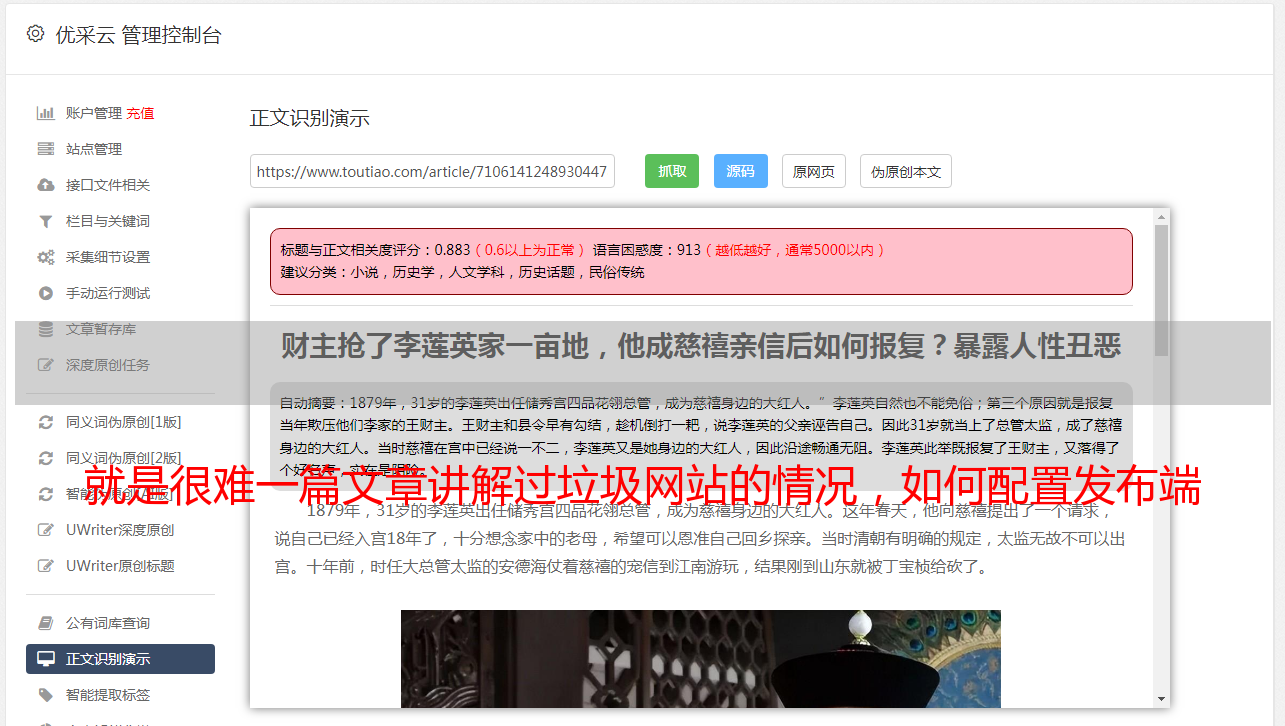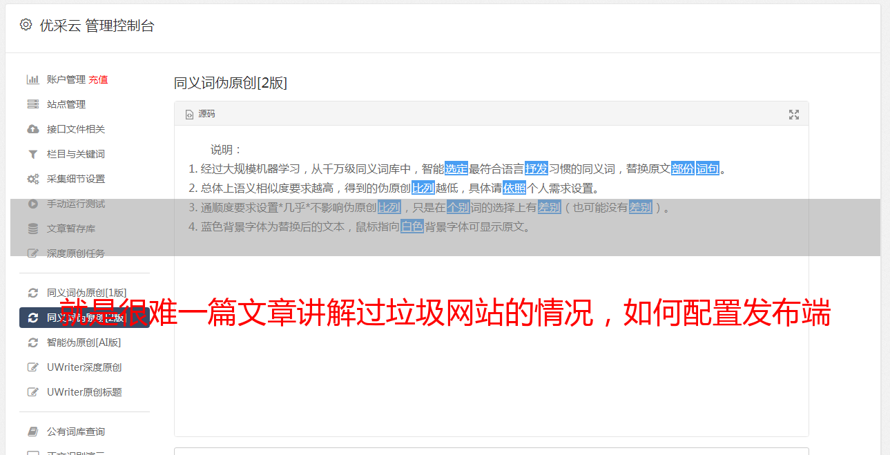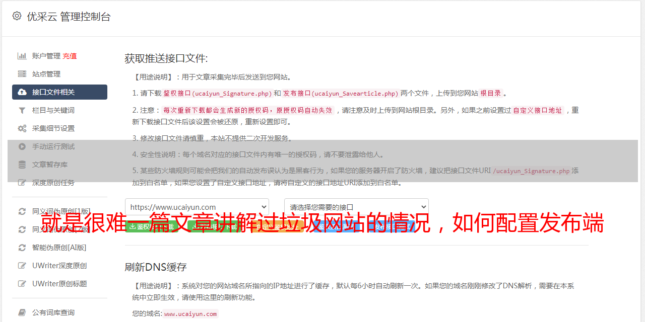 就是很难一篇文章讲解过垃圾网站的情况,如何配置发布端