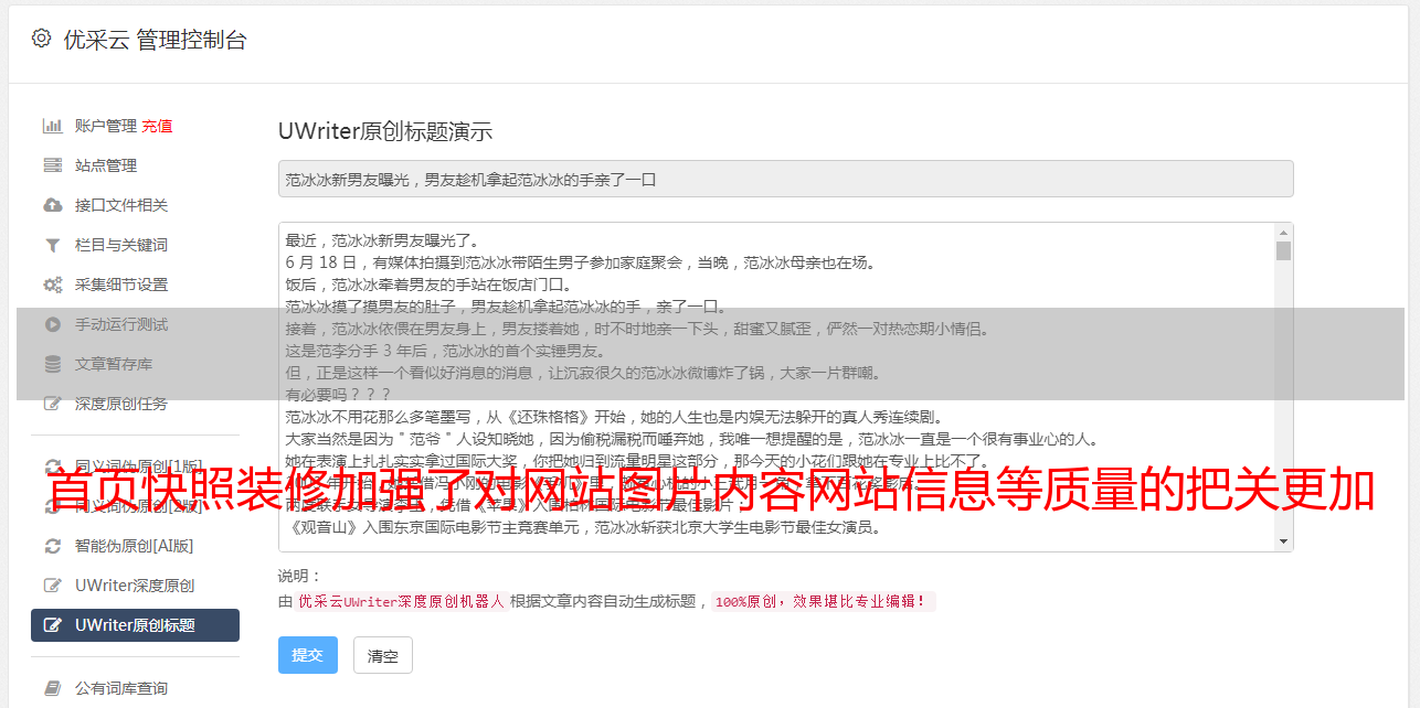 首页快照装修加强了对网站图片内容网站信息等质量的把关更加严格