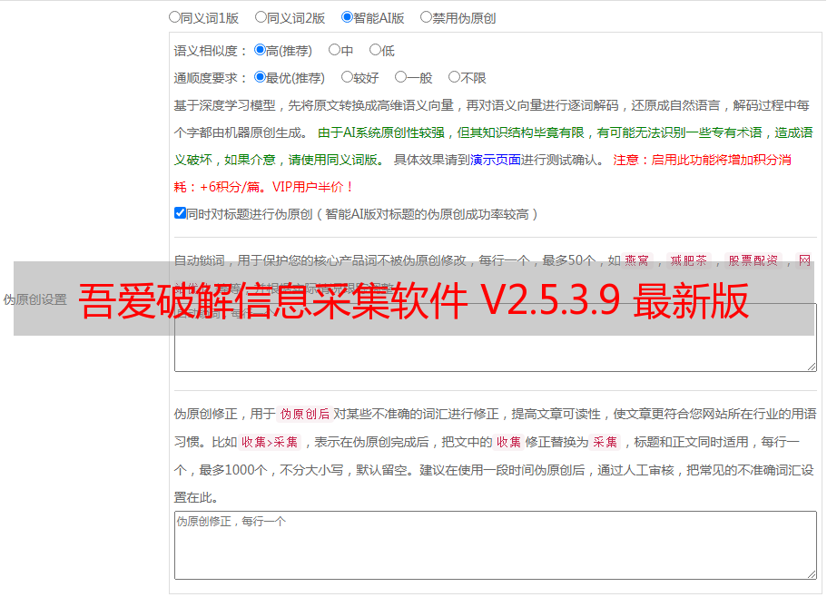 6.强大的信息手动再加工功能。对采集的信息,可进行二次批量再加工,使之愈加符合您的实际要求。也可设置手动加工公式,在采集的过程中,按照公式手动加工处理,包括数据合并和数据替换等。