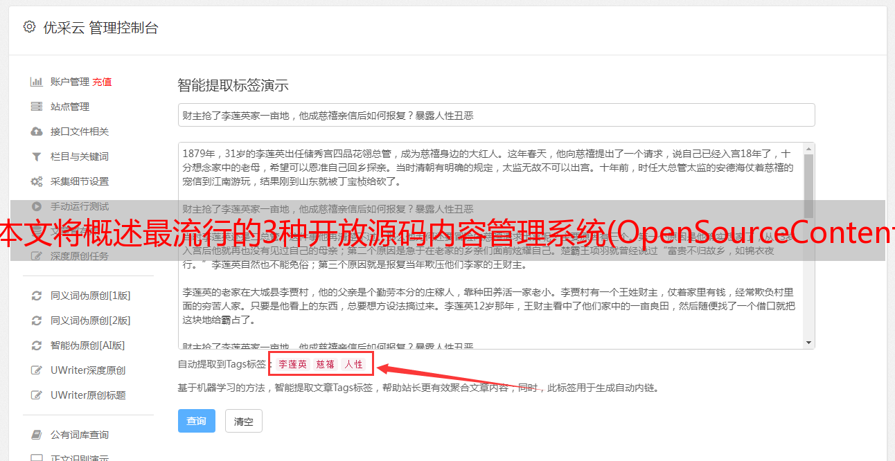 优采云 发布时间: 2021-08-12 07:05本文将概述最流行的3种开放源码内容管理系统(OpenSourceContentManagementSystems)