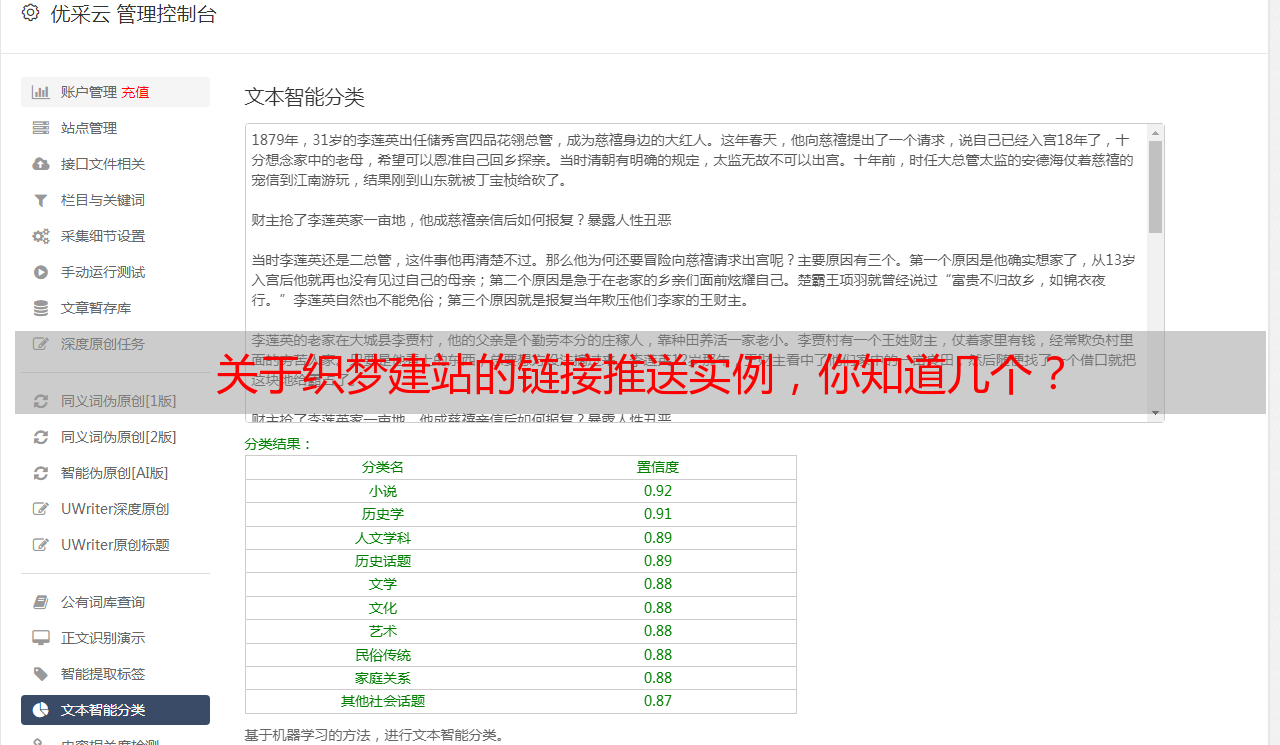 优采云 发布时间: 2021-08-12 19:04关于织梦建站的链接推送实例,你知道几个?