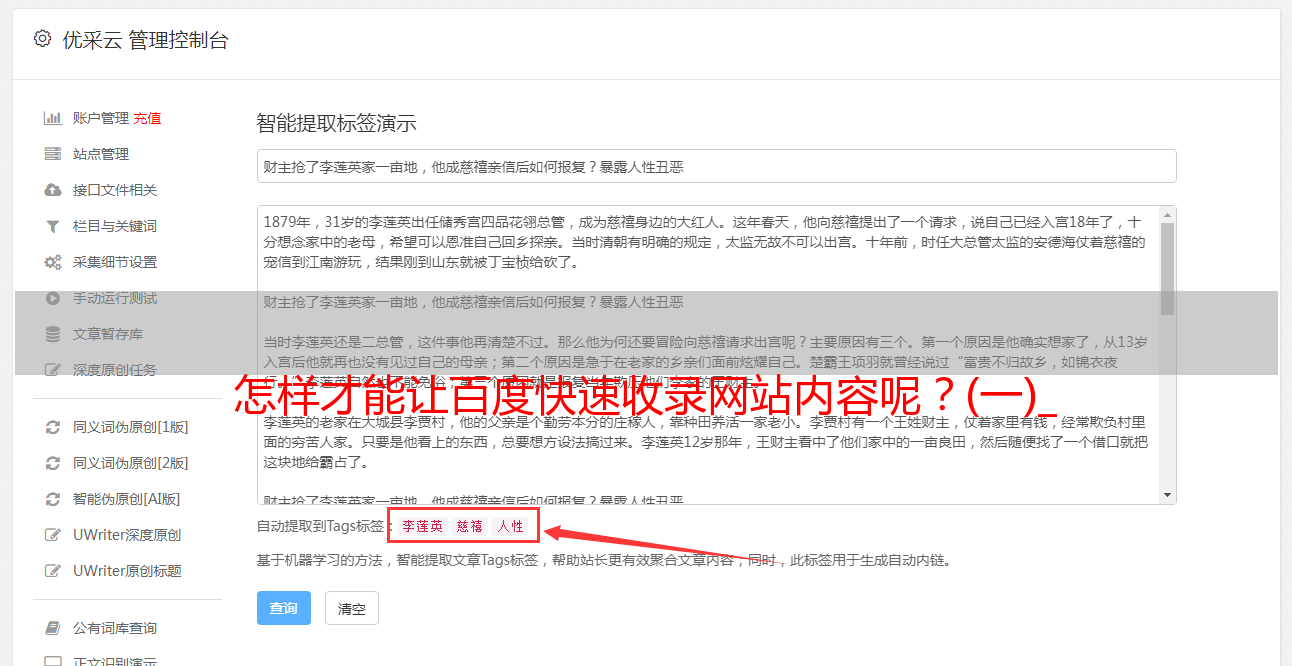 我想所有seo优化服务人员都希望网站的内容能很快被百度收录收到,因为只有收录才是关键词排名的基础。这几年,赤兔云在这几年为企业提供seo优化服务的同时,从来没有看到过网站没有收录,几个关键词排名都非常好。几乎所有网站 都遵循此规则。我们都希望我们写的文章早日成为百度收录。如果我们能在几秒钟内收录 倒下,那就是。然而,现实是残酷的,在新的网站和低权重的网站上几乎很难实现,即使所有原创内容都需要一段时间才能成为收录。那么,百度如何快速收录网站内容?