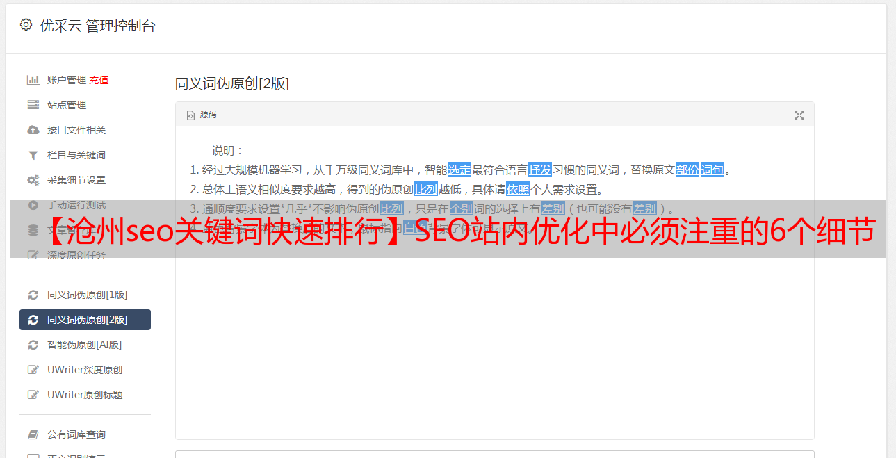 【沧州seo关键词快速排行】SEO站内优化中必须注重的6个细节小结