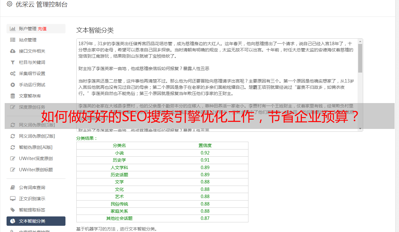 优采云 发布时间: 2021-08-14 00:35如何做好好的SEO搜索引擎优化工作,节省企业预算?