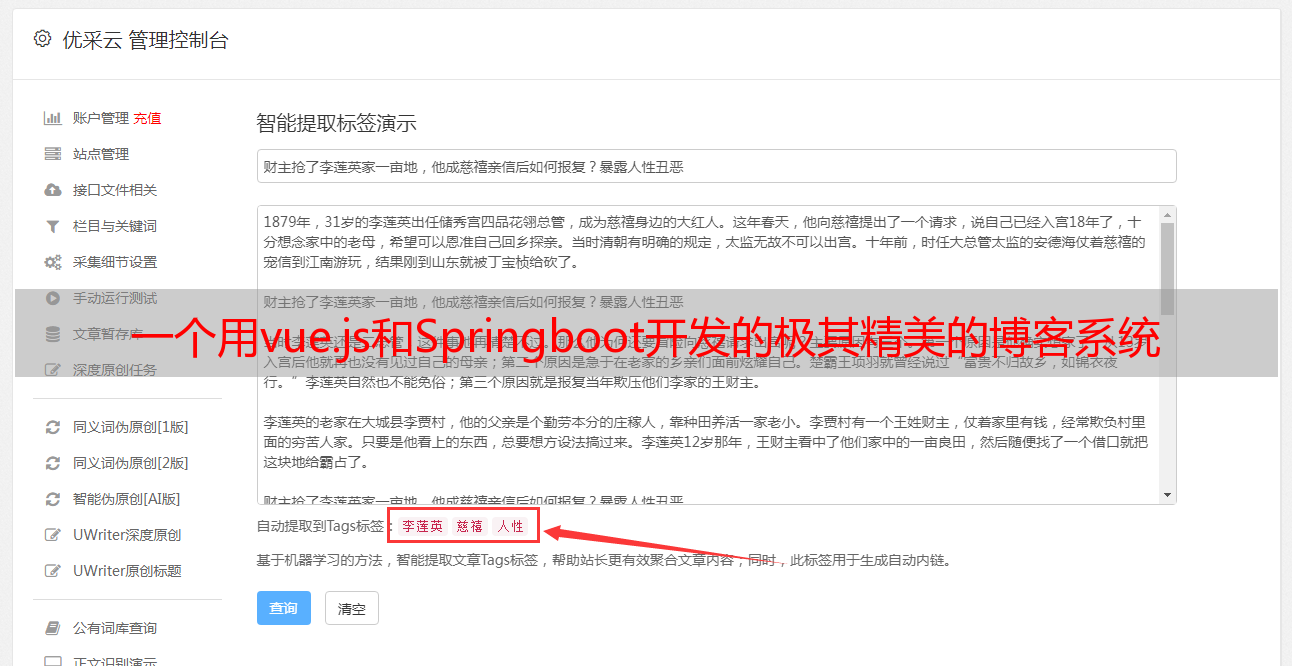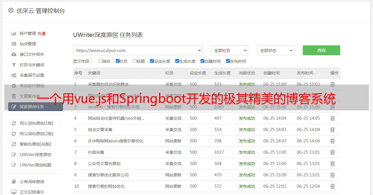 优采云 发布时间: 2021-08-14 00:39一个用vue.js和Springboot开发的极其精美的博客系统