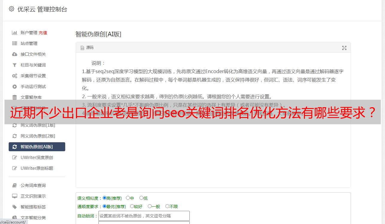 近期不少出口企业老是询问seo关键词排名优化方法有哪些要求?