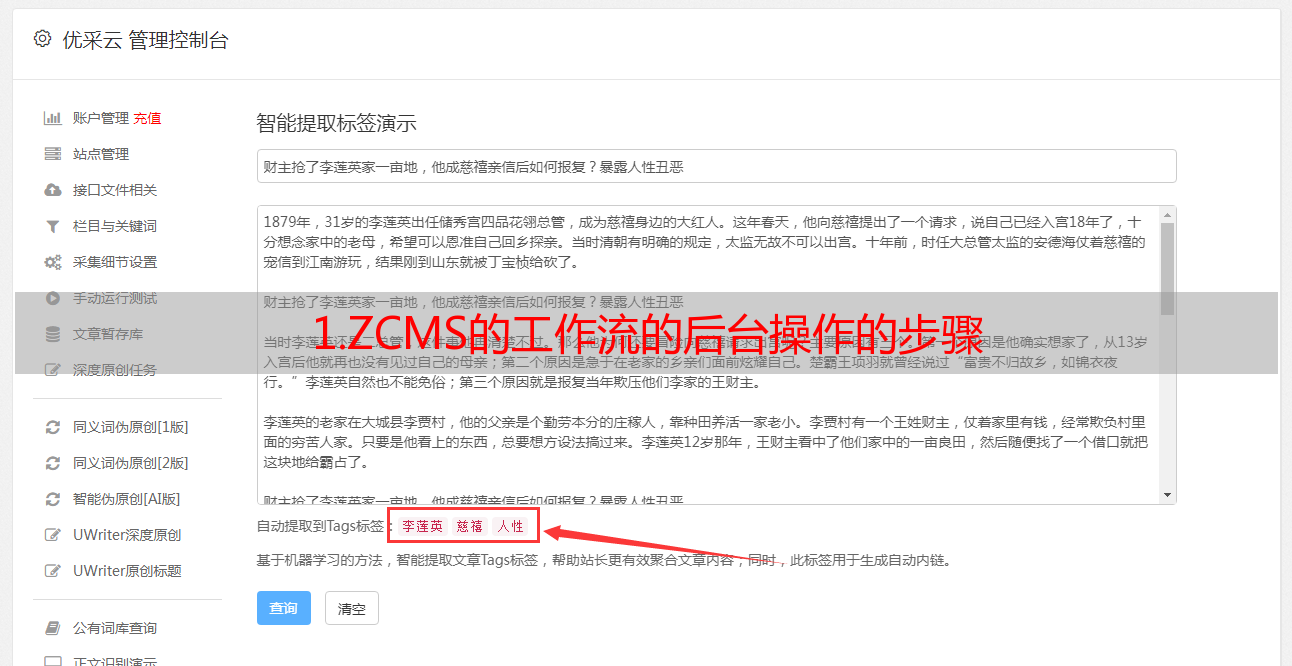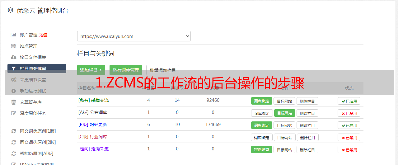 优采云 发布时间: 2021-08-14 23:041.ZCMS的工作流的后台操作的步骤