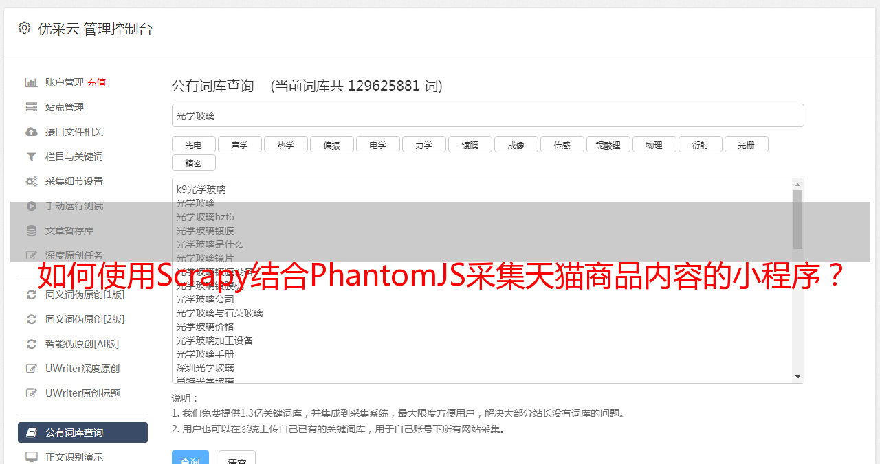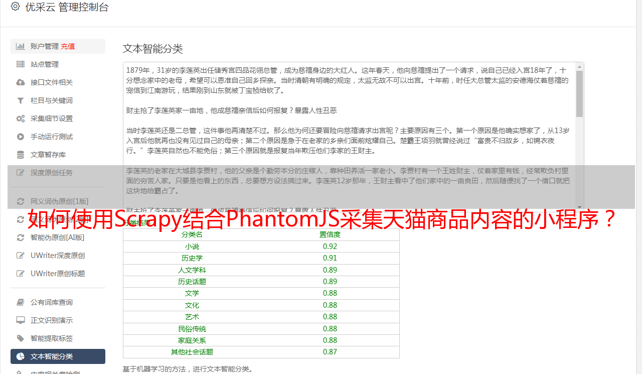 如何使用Scrapy结合PhantomJS采集天猫商品内容的小程序?