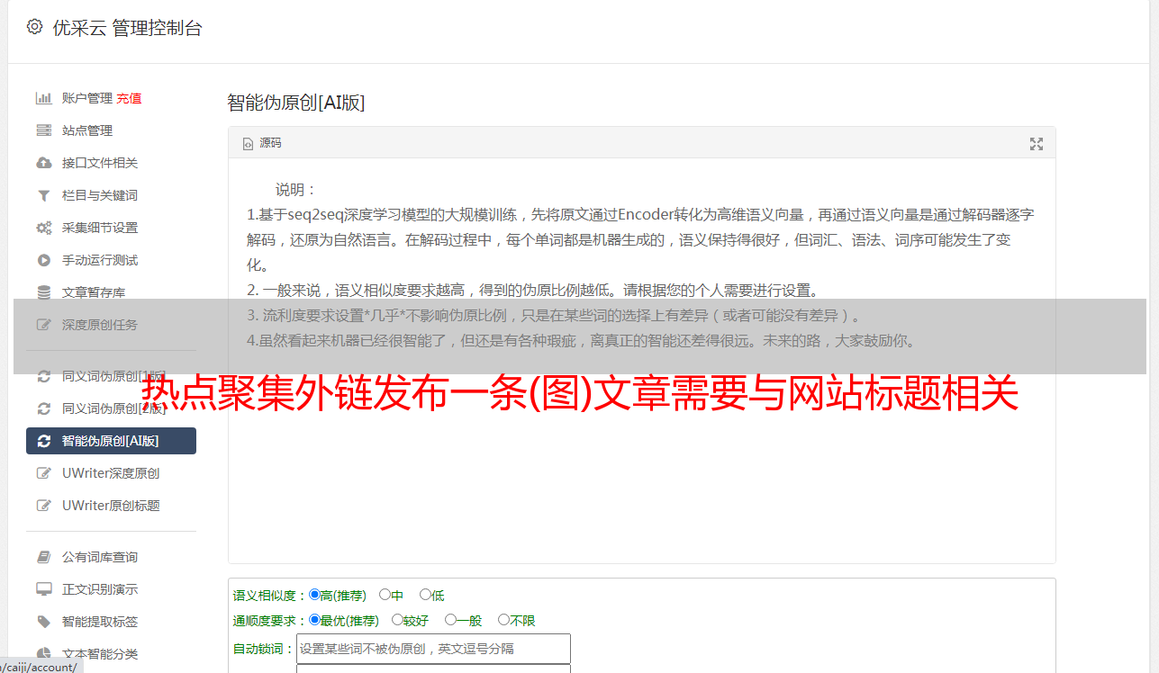 相关性也很重要。 文章 需要与网站 的标题相关联。首先,客户在输入网站之前会看到网站的标题。打开网站后,我会看到文章,但是如果文章与标题无关,那么网站这样做有什么意义?