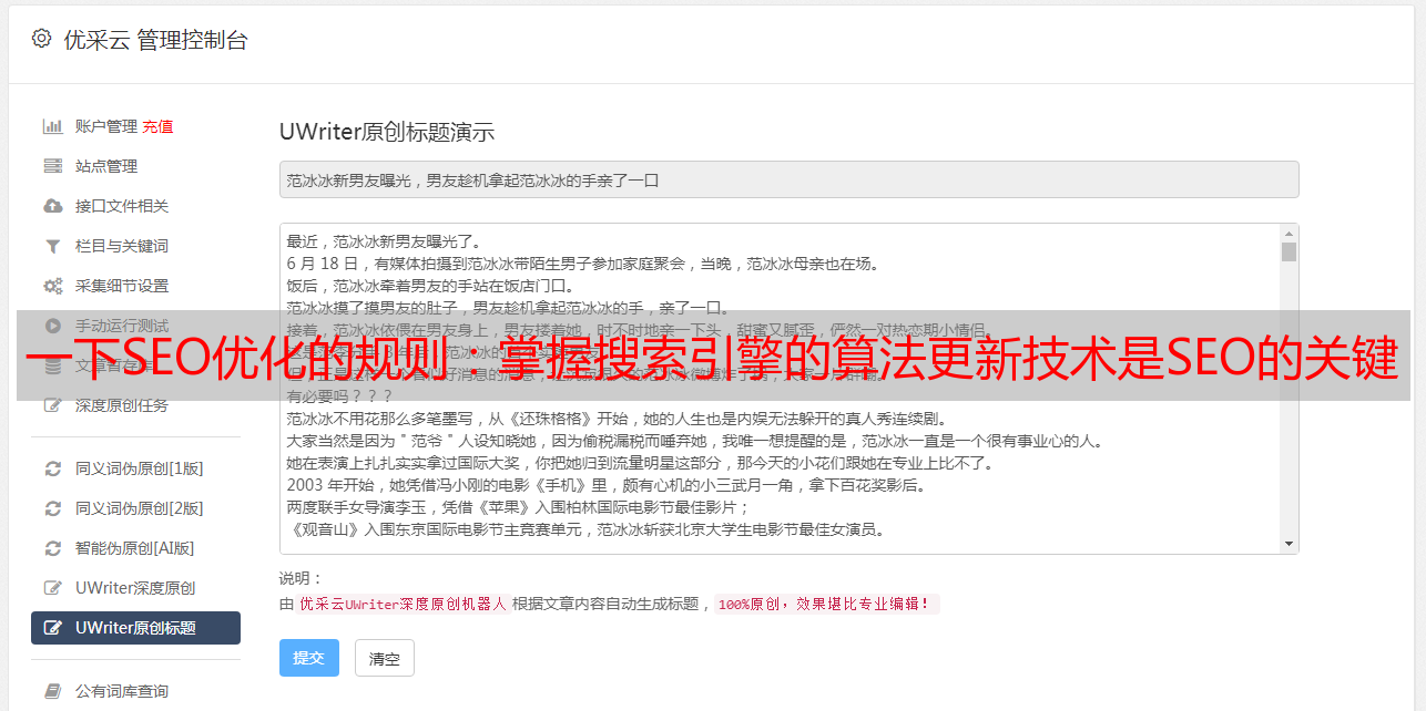 优采云 发布时间: 2021-08-15 23:11一下SEO优化的规则:掌握搜索引擎的算法更新技术是SEO的关键