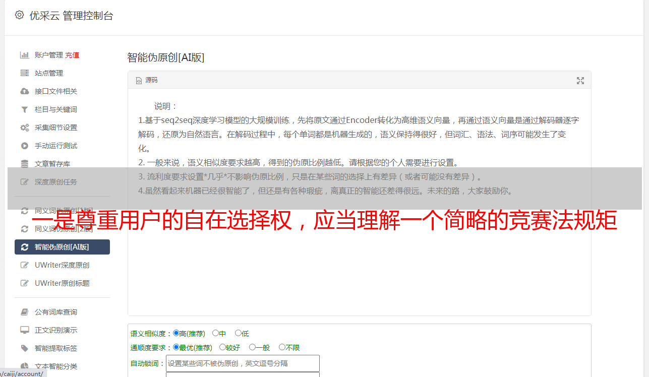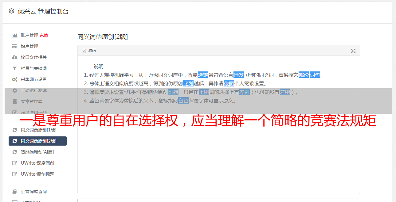 一是尊重用户的自在选择权,应当理解一个简略的竞赛法规矩