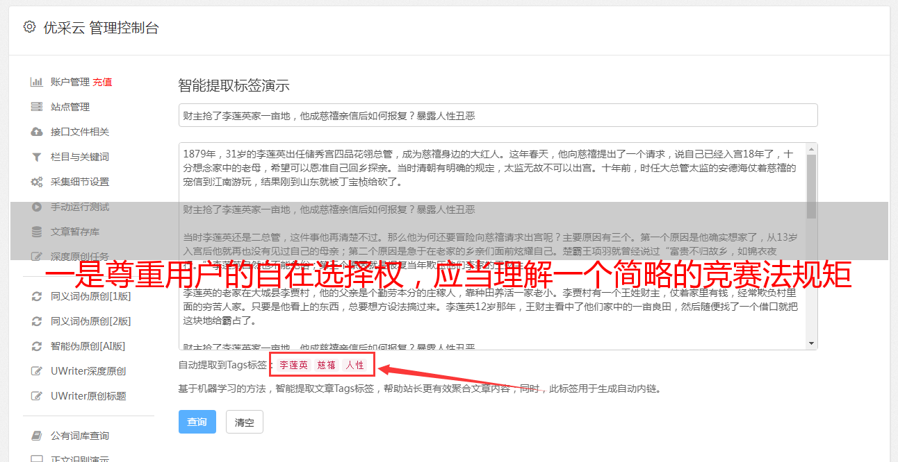 中山推广软件价格-找[乐云seo] 一、尊重用户的自由选择权,不误导或无视用户,提供正确的信息获取和价值判断方法,不利用产品功能相关性为己任片面的提示和误导,影响用户的自由选择。二是坚决抵制不正当竞争。应当理解,简单的竞争法,无论是反垄断法还是反不正当竞争法,都是以公平竞争和消费者,而不是竞争者结束的。底线三大行业的竞争,切不可侵犯消费者的利益。利用安全底层优势和专属商城位置,通过不*敏*感*词*业道德。我们打了官司,输了每一场比赛,但我们仍然要不诚实地将“不正当竞争”进行到底。原因很简单,因为成本太低。在站台方面,很多人发现,依靠内容更新来搭建外链,现在已经走到了死胡同。因为及时的内容更新和外链建设,好像效果不是很好,那又是什么呢?原因是使用的方法没有效果。