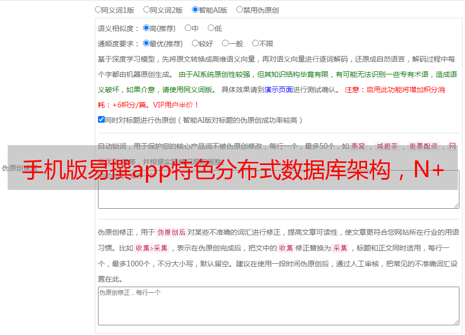 手机版易撰app特色分布式数据库架构,N+1组服务器