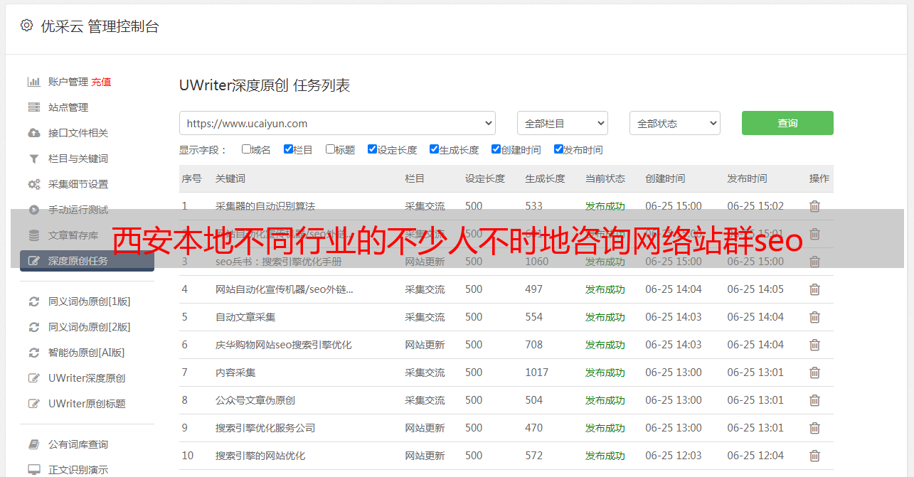 优采云 发布时间: 2021-08-17 22:16西安本地不同行业的不少人不时地咨询网络站群seo