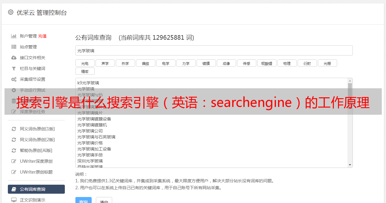 优采云 发布时间: 2021-08-18 03:22搜索引擎是什么搜索引擎(英语:searchengine)的工作原理