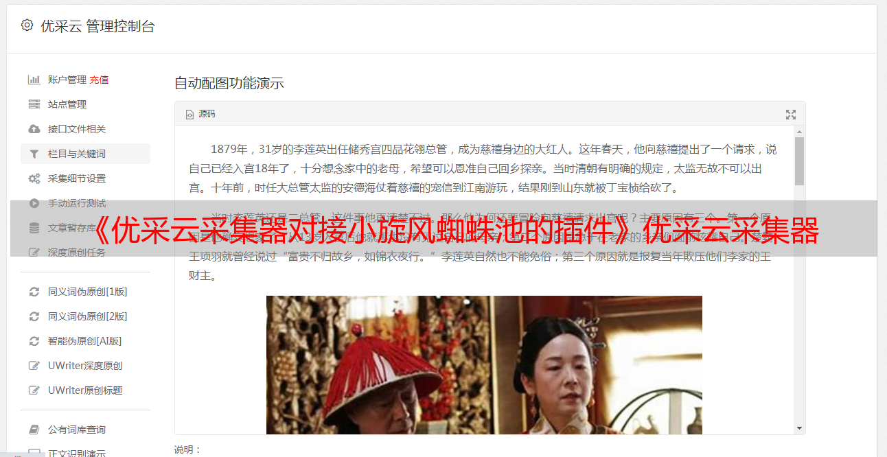 《优采云采集器对接小旋风蜘蛛池的插件》优采云采集器