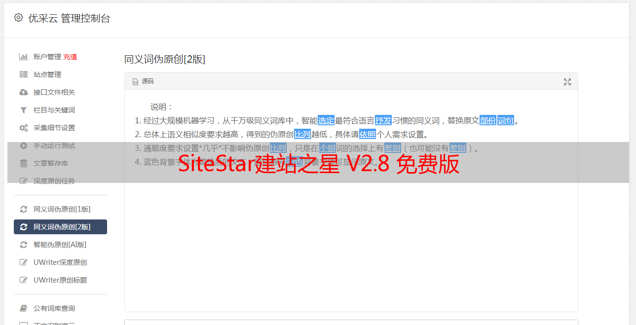 优采云 发布时间: 2020-08-13 00:10SiteStar建站之星是一款非常好用的网站建设系统,用户无需学习任何相关语言,也不需第三方代写或管理网站,只需应用系统所提供的各类强悍丰富的功能模块,即可轻松生成企业个性化的精致网站,可谓是用户建站的最佳选择。