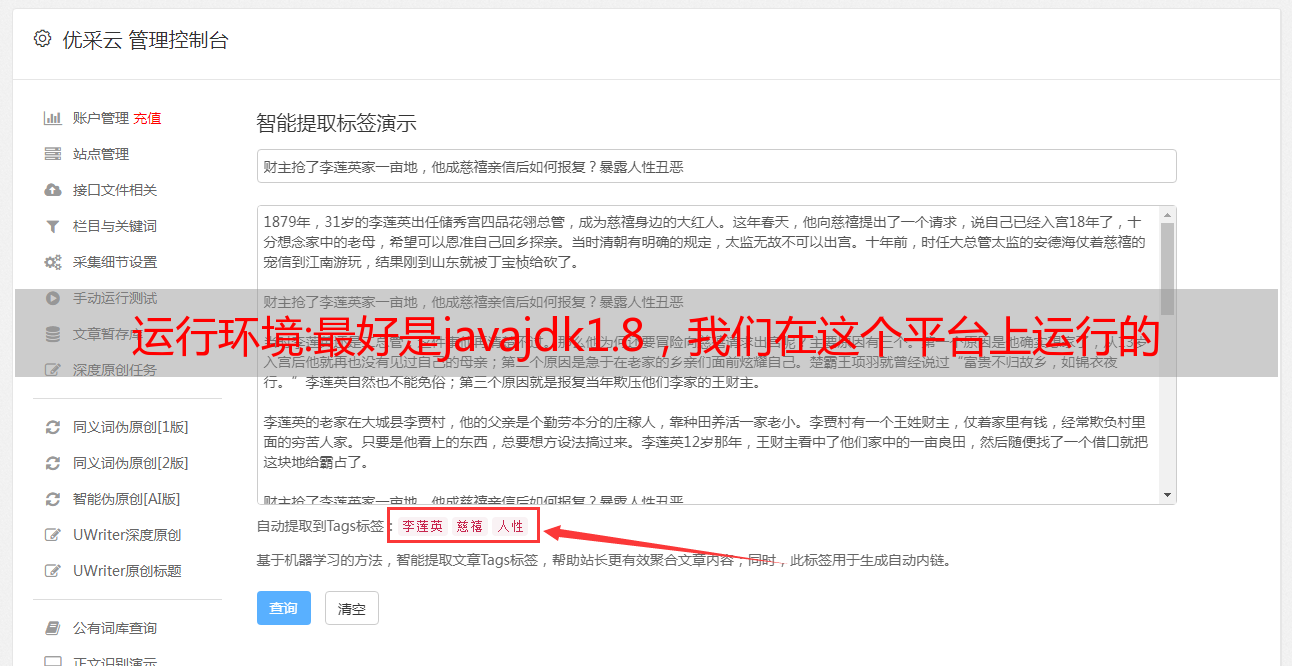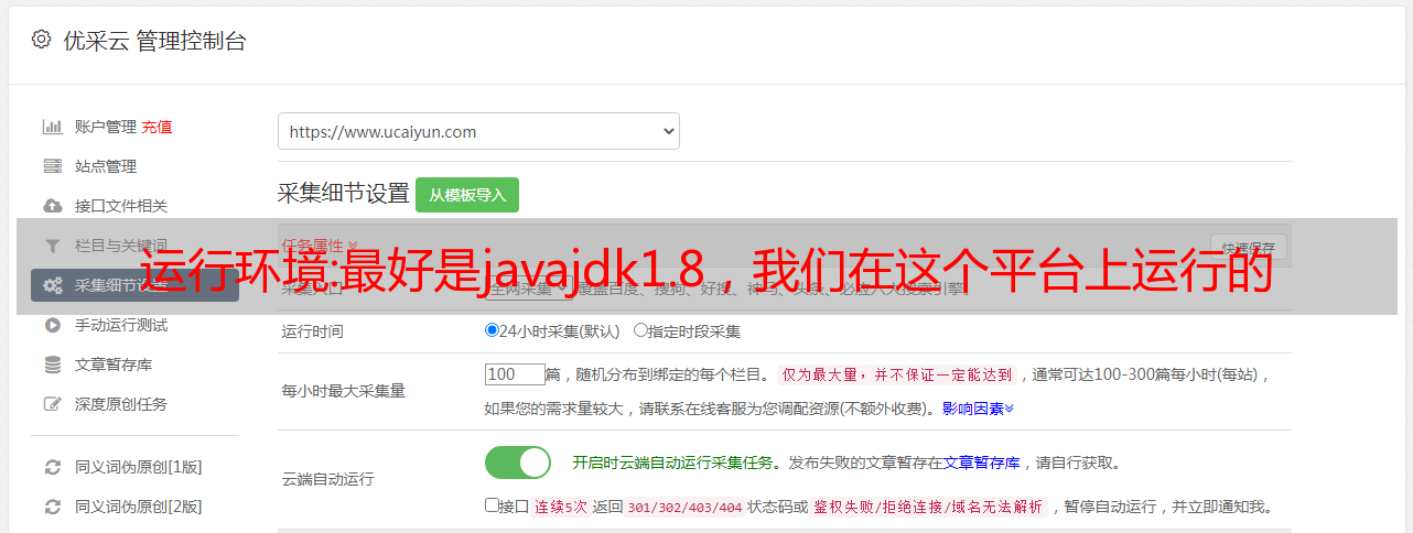 优采云 发布时间: 2021-08-18 19:04运行环境:最好是javajdk1.8,我们在这个平台上运行的