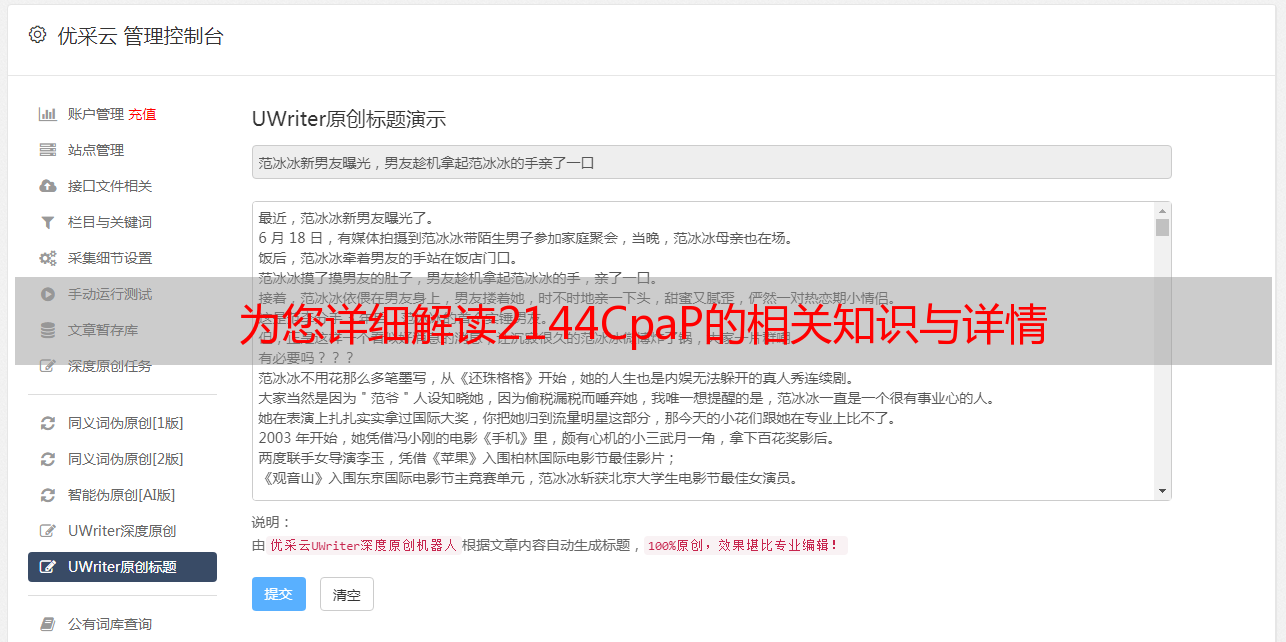 优采云 发布时间: 2021-08-18 23:08为您详细解读2144CpaP的相关知识与详情