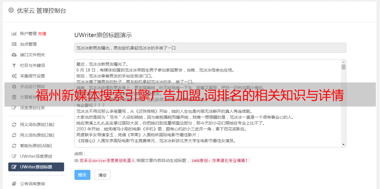 优采云 发布时间: 2021-08-19 04:29福州新媒体搜索引擎广告加盟,词排名的相关知识与详情