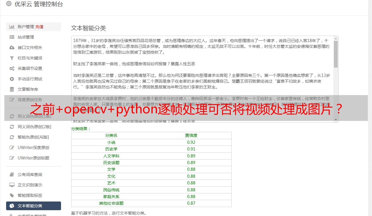 优采云 发布时间: 2021-08-19 20:00之前+opencv+python逐帧处理可否将视频处理成图片?