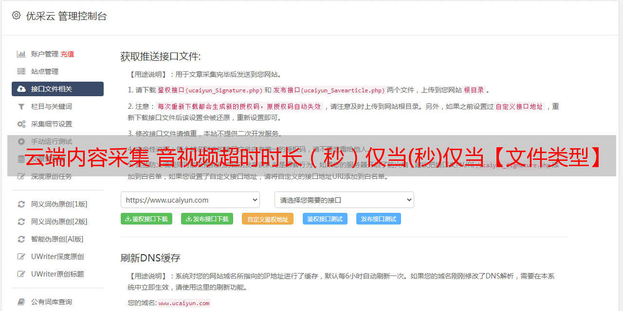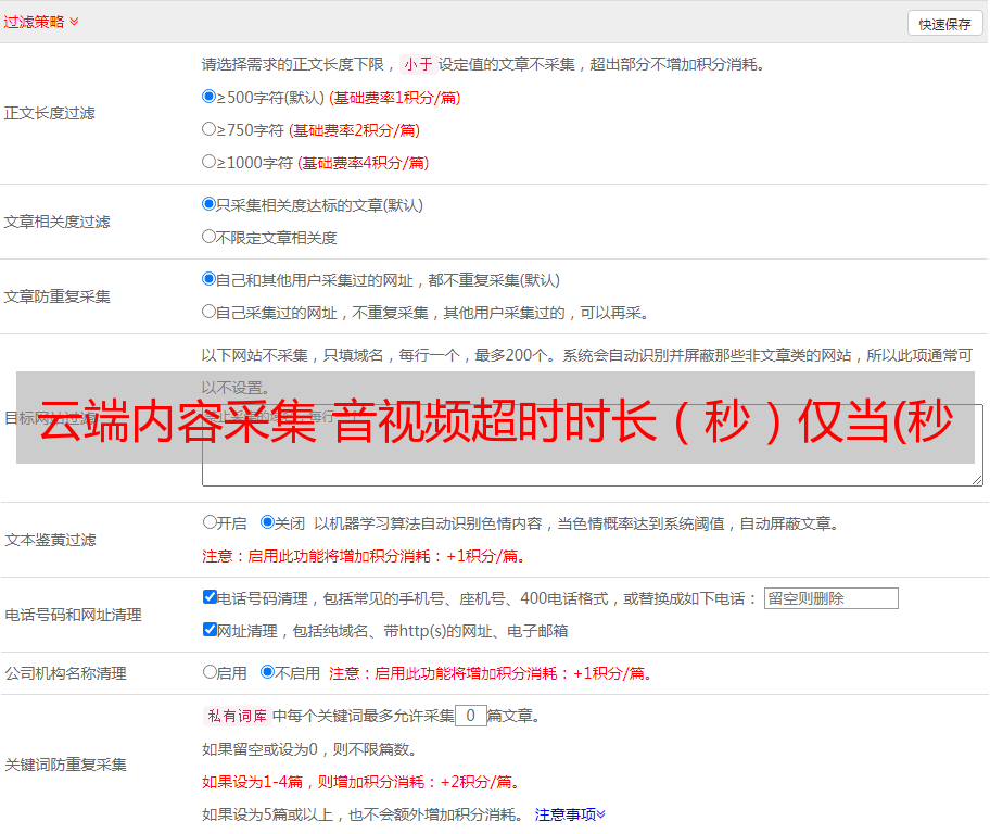 优采云 发布时间: 2021-08-20 23:21云端内容采集 音视频超时时长(秒)仅当(秒)仅当【文件类型】