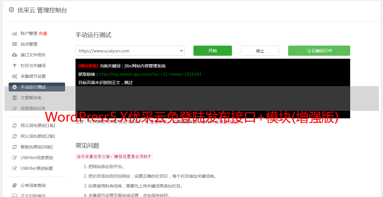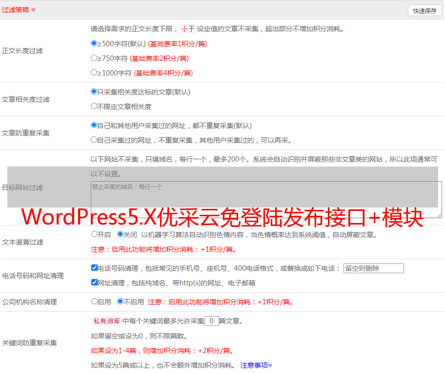 WordPress5.X优采云免登录发布界面+模块(增强版)使用说明