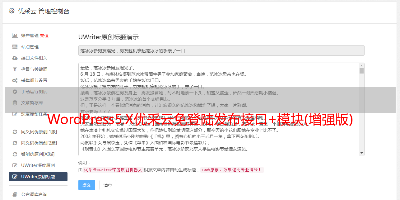 WordPress5.X优采云免登陆发布接口+模块(增强版)