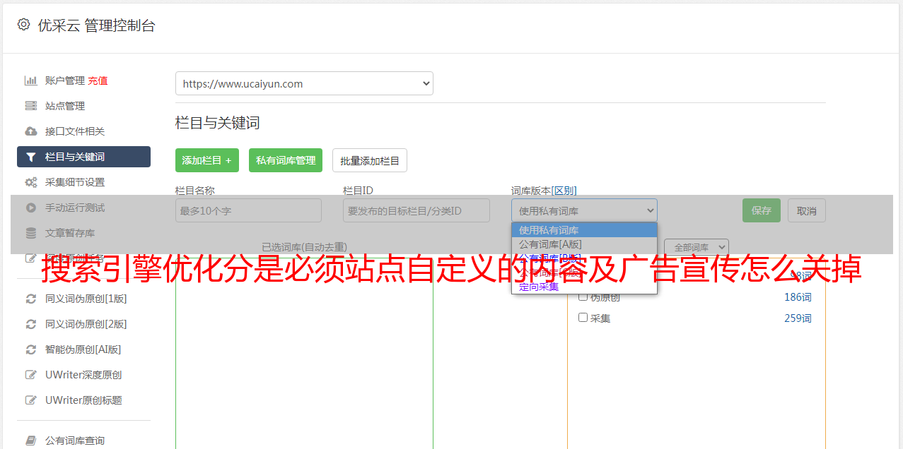 搜索引擎优化分是必须站点自定义的内容及广告宣传怎么关掉