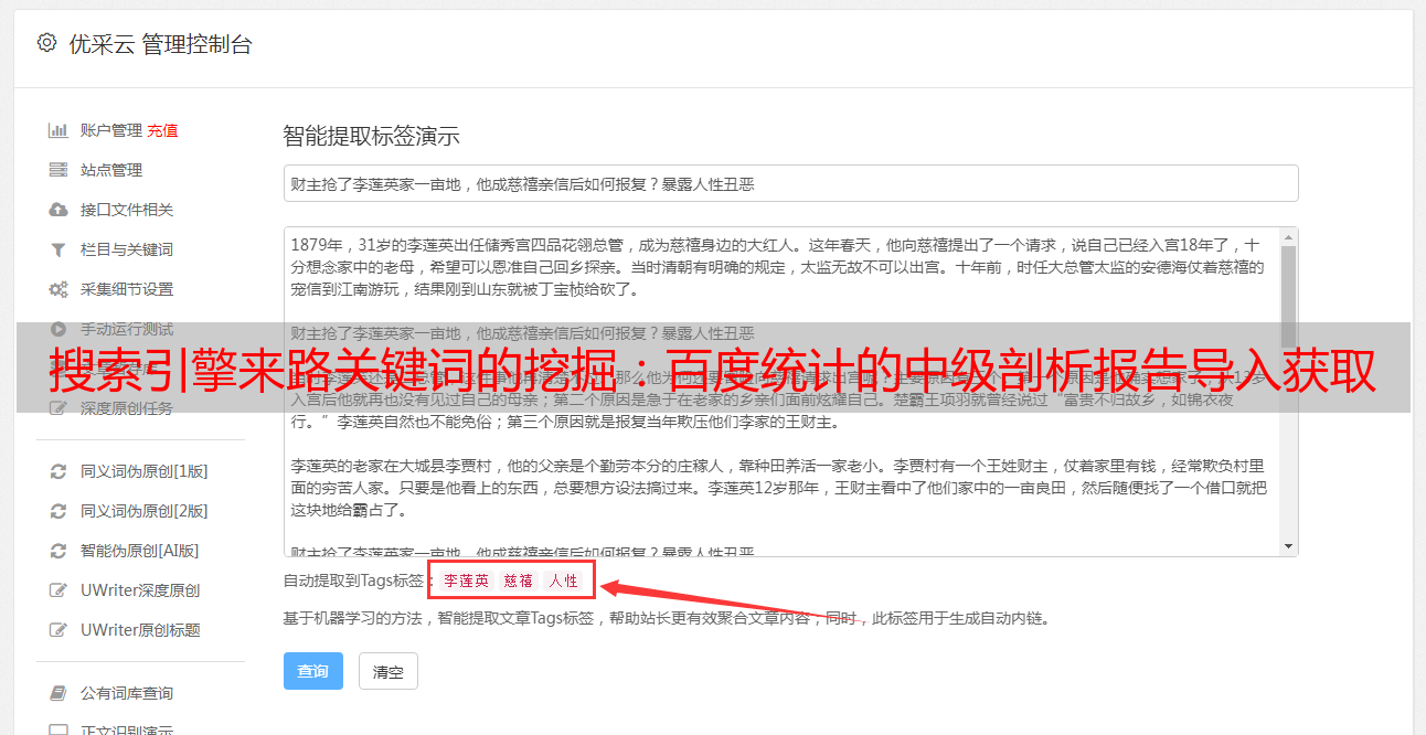 搜索引擎来路关键词的挖掘:百度统计的中级剖析报告导入获取来源关键词