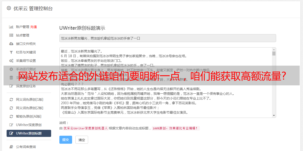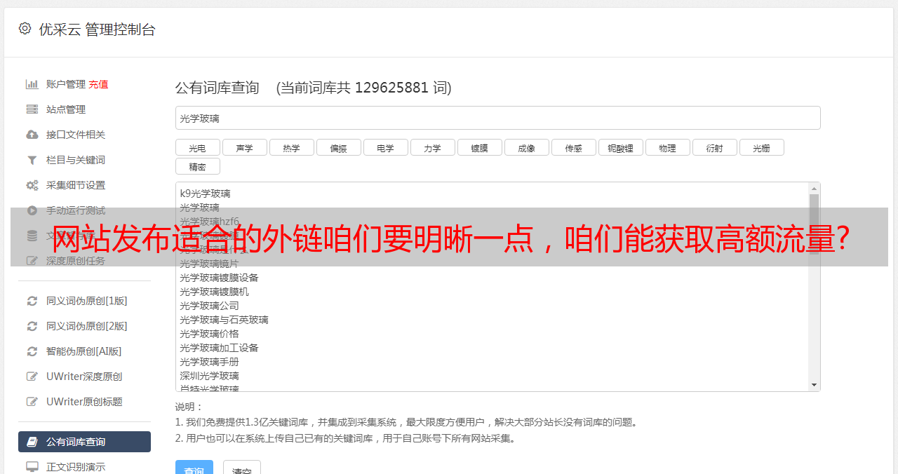 优采云 发布时间: 2021-08-24 04:33网站发布适合的外链咱们要明晰一点,咱们能获取高额流量?