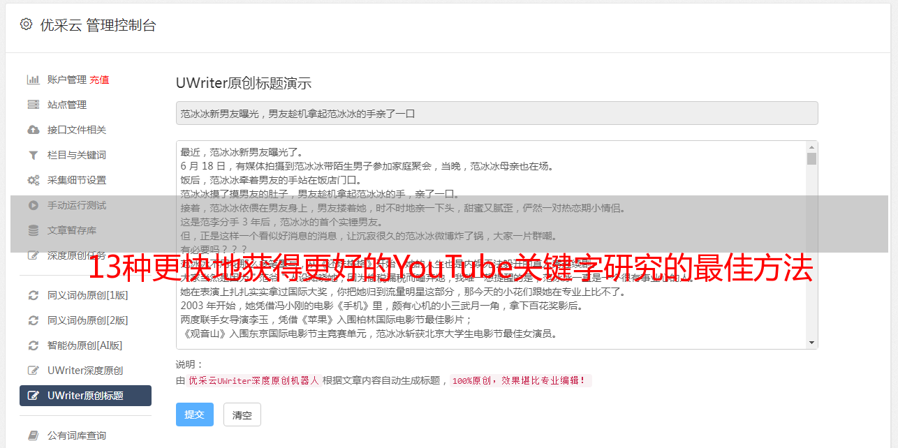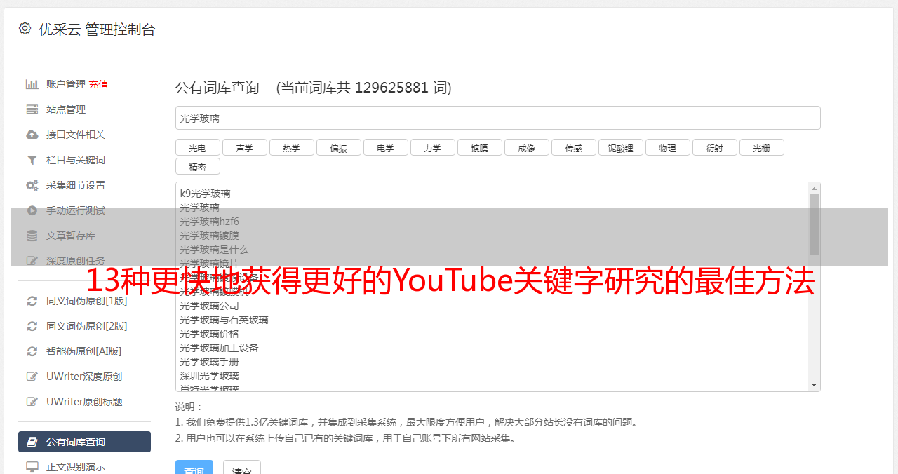 以上是13个YouTube关键词研究工具和方法。希望为大家提供更多的选择,为YouTube视频的SEO优化打下坚实的基础。