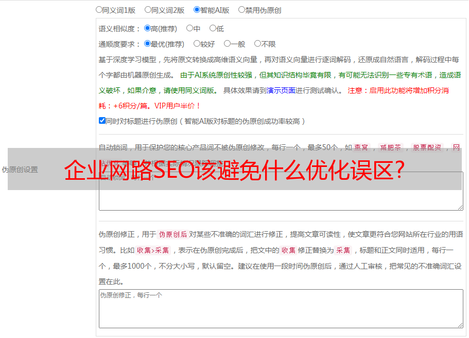 企业网路SEO该避免什么优化误区?现在网站优化不仅仅只是单纯发发文章就会有排行的,其实这都是有一定的优化方法的,同时也要重视一些SEO细节的优化,否则网站的排行都难有较大的提高的。