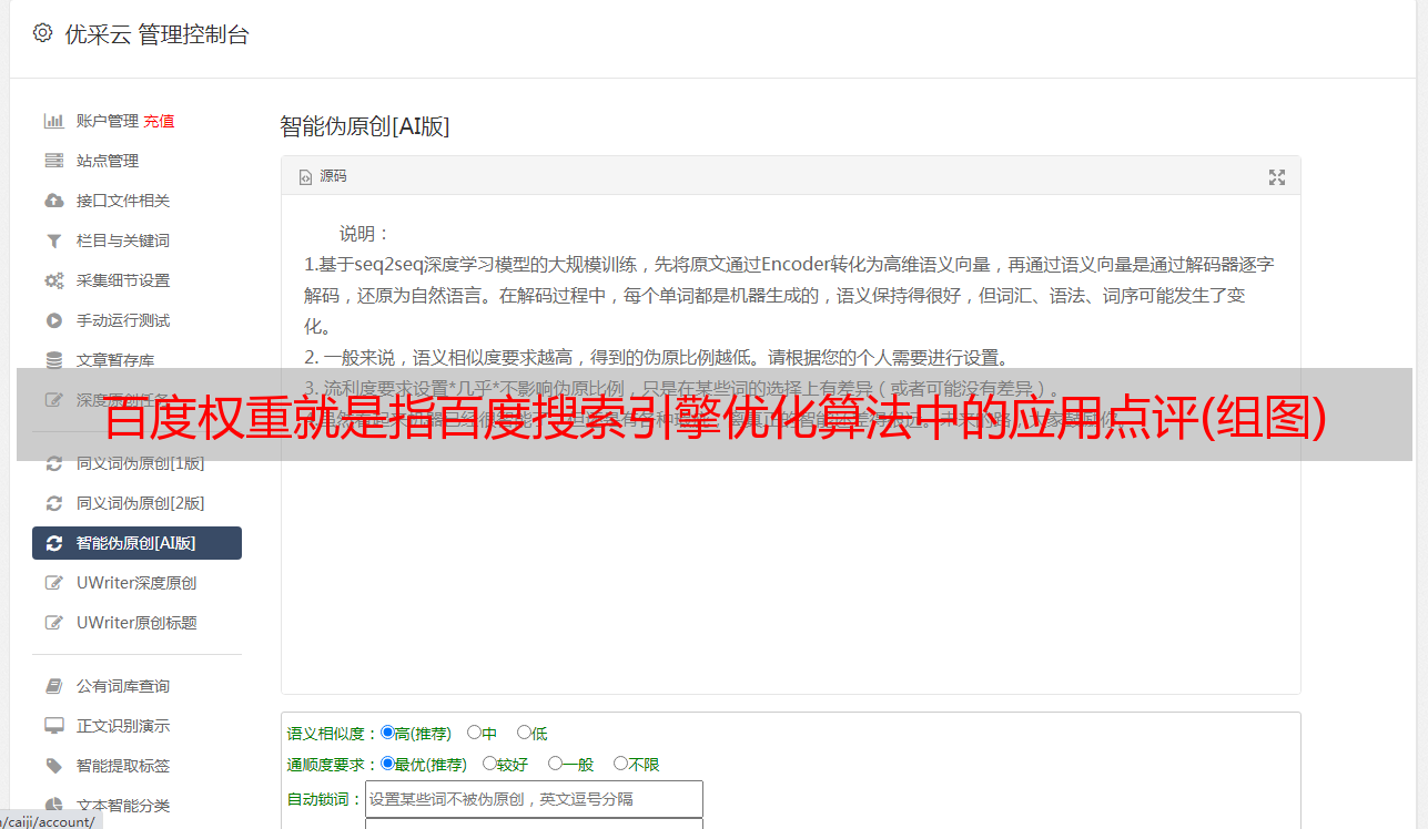 优采云 发布时间: 2021-08-24 07:39百度权重就是指百度搜索引擎优化算法中的应用点评(组图)