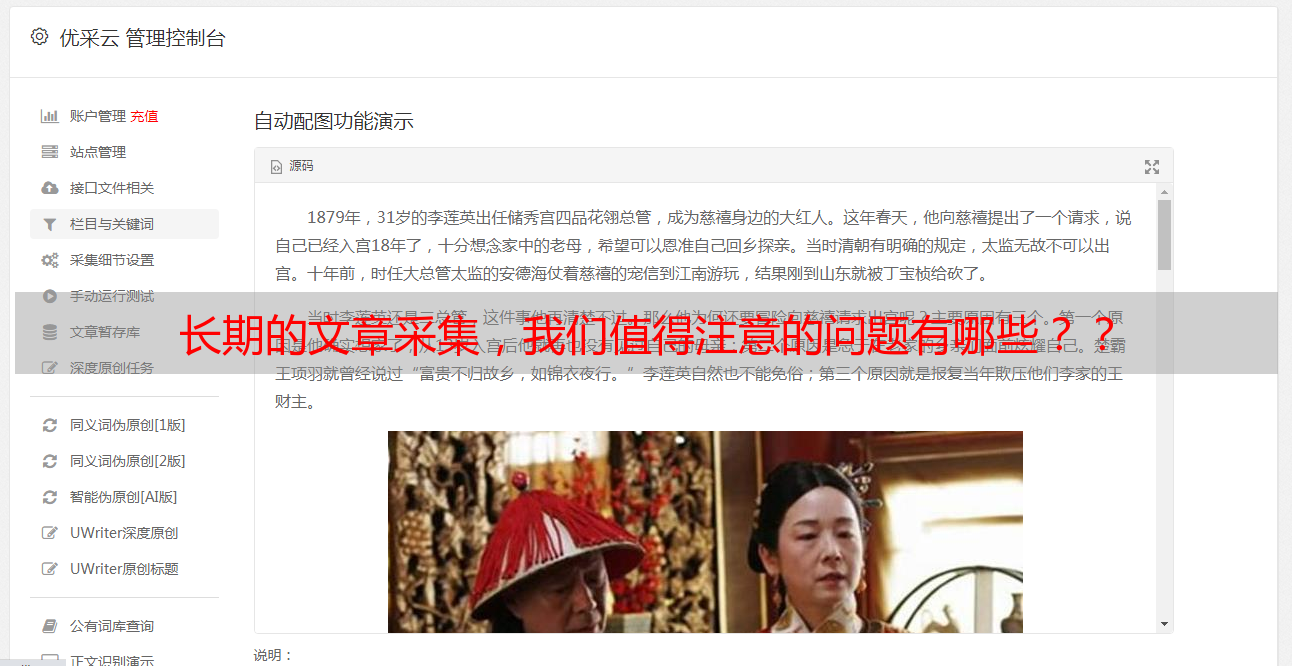优采云 发布时间: 2021-08-24 20:08长期的文章采集,我们值得注意的问题有哪些??