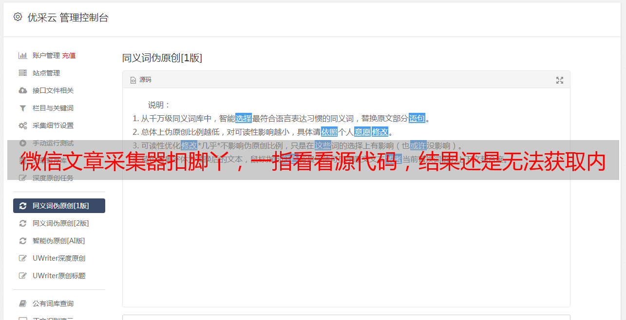 微信文章采集器扣脚丫,一指看看源代码,结果还是无法获取内容是可忍