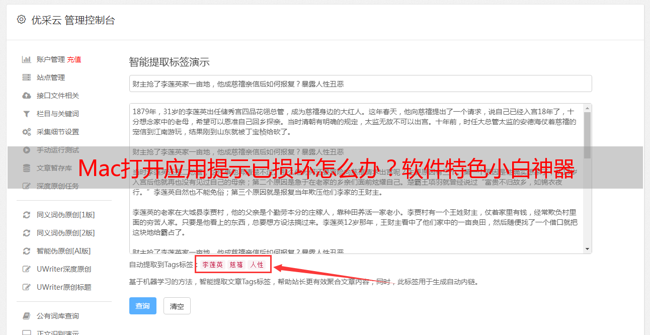 优采云 发布时间: 2021-08-25 02:11Mac打开应用提示已损坏怎么办?软件特色小白神器