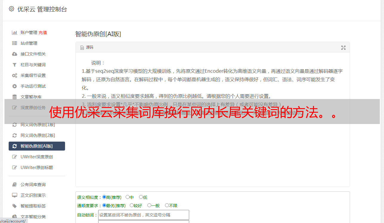 使用优采云采集词库换行网内长尾关键词的方法。。