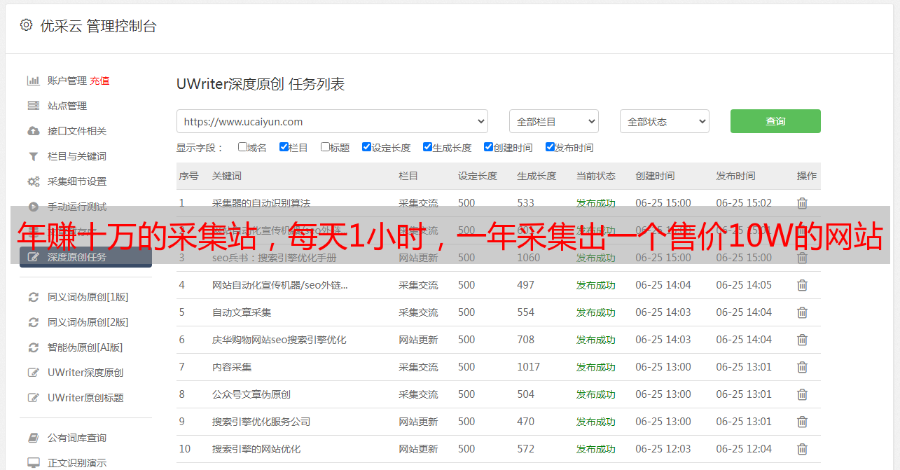 优采云 发布时间: 2021-08-26 00:13年赚十万的采集站,每天1小时,一年采集出一个售价10W的网站(无水印)