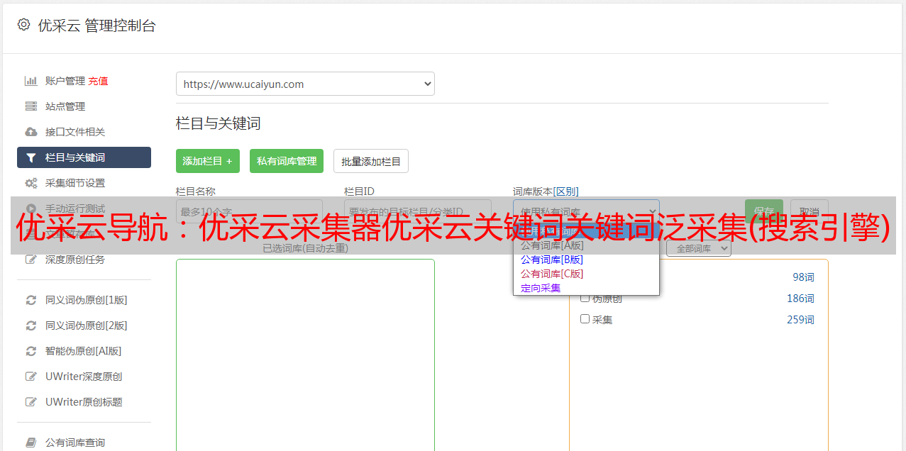 优采云导航:优采云采集器优采云关键词关键词泛采集(搜索引擎)