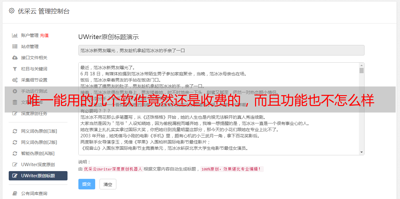 优采云 发布时间: 2021-08-26 04:14唯一能用的几个软件竟然还是收费的,而且功能也不怎么样