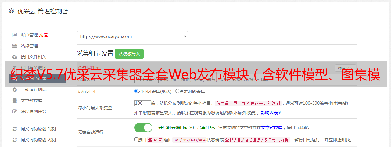 织梦V5.7优采云采集器全套Web发布模块(含软件模型、图集模型、