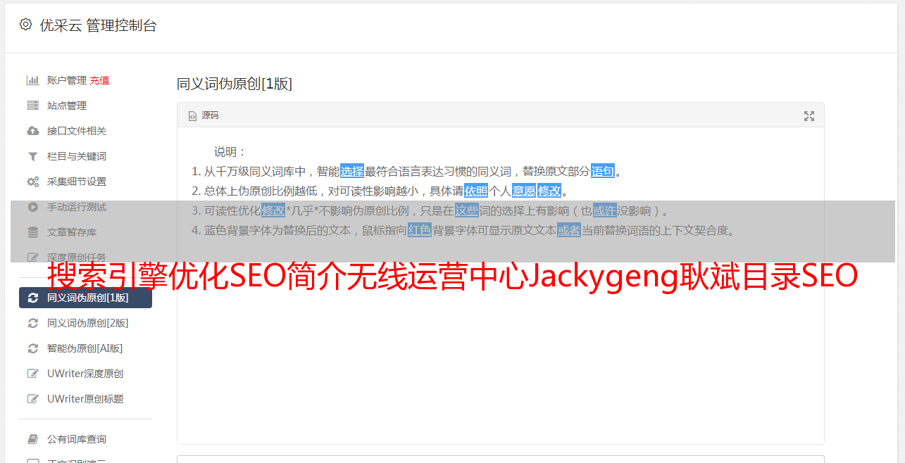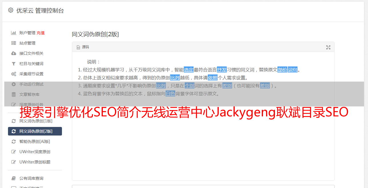 搜索引擎优化介绍SEO无线运营中心Jackygeng耿斌20080125目录SEO为什么这么流行什么是SEO为什么SEO是SEO什么可以用搜索引擎做什么样的网站rankup前端搜索引擎工作原理搜索引擎排名规则,素材编码规则,三大重要议事规则,文件编号规则,乒乓球比赛规则,不规则动词,如何实*敏*感*词*三角现象。用户对搜索结果页面的关注范围呈现英文字母F的形状。为什么SEO搜索引擎需要网民?获取信息的主要工具 据CNNIC统计,约有70名网友不记得登录网站的网址,但通过查询引擎关键词visit检索网站search引擎是一个高效的网络推广渠道。搜索引擎会为客户带来最明确的产品需求网站。从网站联盟的数据来看,SEO带来的流量转化率高达30,网友们相信自然搜索的结果。搜索引擎会在搜索页面上提供特殊的关键字。在广告方面,搜索引擎右侧关键词广告的点击率远低于排名左侧自然搜索的网站网民。一般只检查搜索结果中的前几名。大多数网友在搜索时只点击搜索主页。