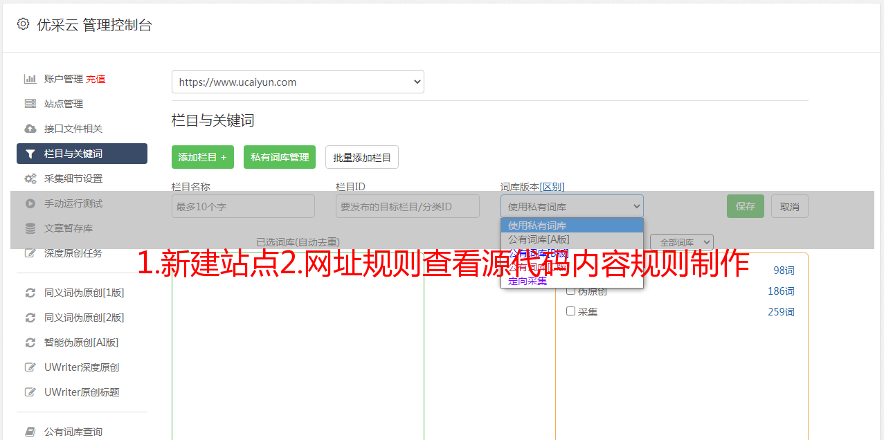 我们发布到本地网站dedecms5.3,所以模块选择对应的版本,网站管理目录是,所以按照说明填写,然后选择代码,我们网站gbk,所以选择gbk。然后登录网站,使用优采云内置浏览器登录。如图所示